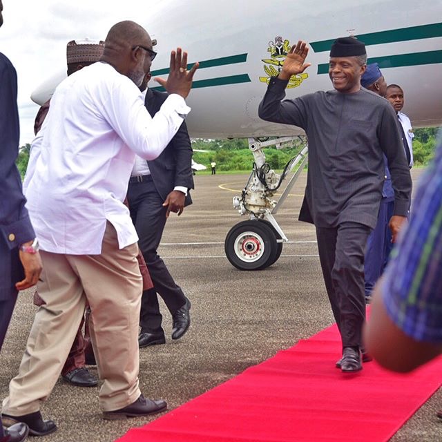 Governor Akeredolu and Vice President Osinbajo at the Akure airport