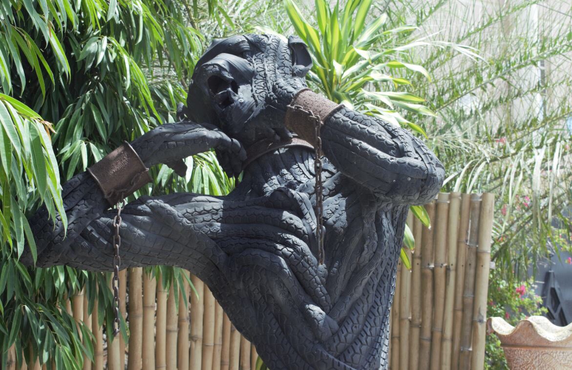 Statue made of bicycle tyres outside Nike Art Gallery