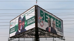 Campaign billboards with Nigeria’s President Muhammadu Buhari with Vice President Yemi Osinbajo, and Nigeria’s main opposition party presidential candidate Atiku Abubakar with his running mate, Peter Obi, in Abuja, Nigeria, on February 5, 2019. Afolabi Sotunde/Reuters