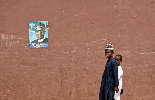 A campaign poster for President Muhammadu Buhari, who is running for re-election.
