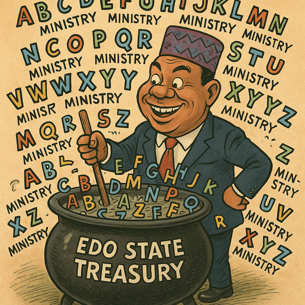 From A to Z, Okpebholo’s ministries now outnumber Edo’s local governments. There’s the Ministry of Keke Regulation and Okada Spiritual Affairs, the Department of Letter Q and Quiet Achievements, and the Bureau of Unexplained Ministries (BUM), which no one can find — though it reportedly receives a monthly subvention.