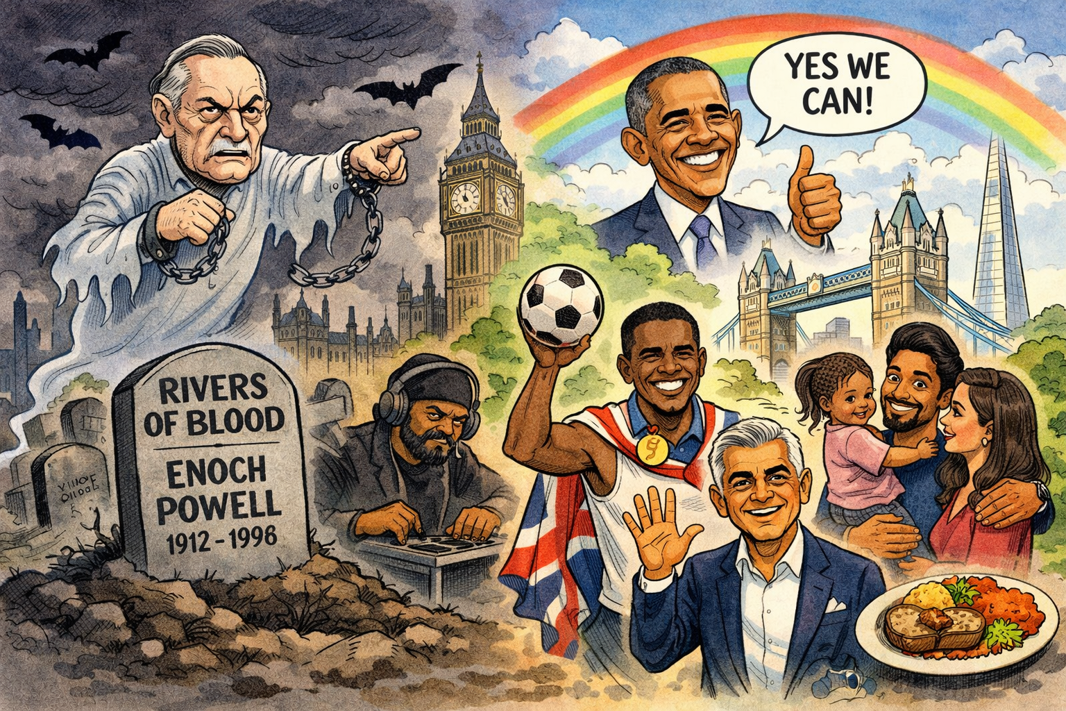 In 1968, in a hall in Birmingham, Enoch Powell warned of “rivers of blood.” Britain, he suggested, stood on the brink of racial cataclysm. Decades later, the phrase still echoes whenever non-white migration is discussed—as if demographic change were a prelude to civil war rather than to Sunday roast with jollof rice on the side.